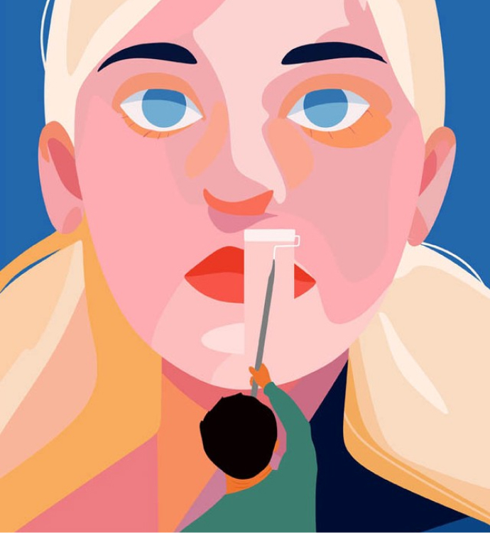 Una composición vibrante que muestra a un personaje pintando su propio rostro, fusionando el arte del autorretrato con un toque de surrealismo.
